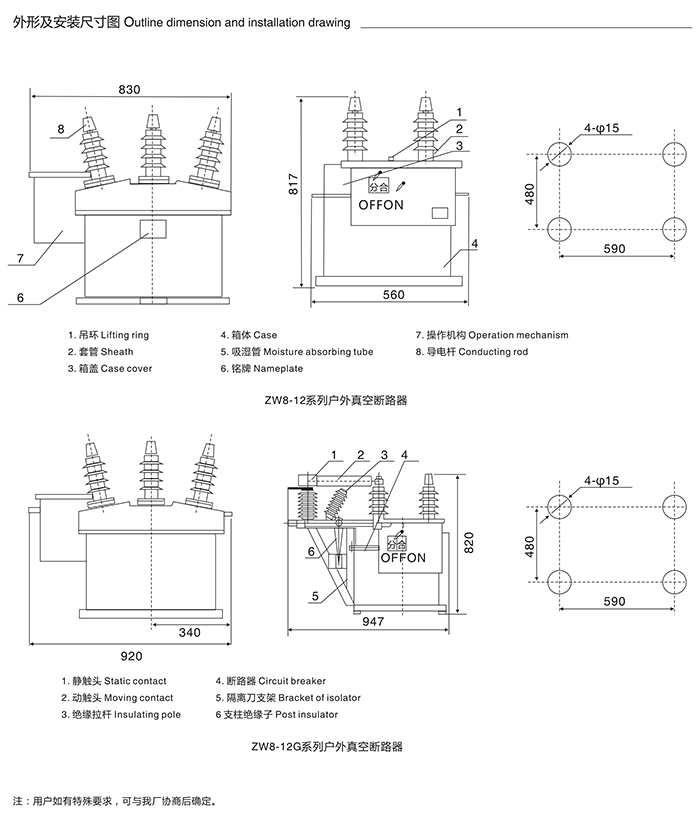 ZW8-12 ZW8-12G系列戶外高壓真空斷路器