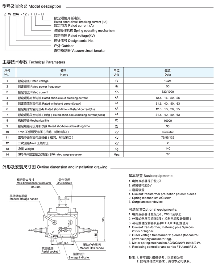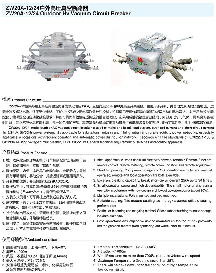 ZW20A-12/24戶外高壓真空斷路器