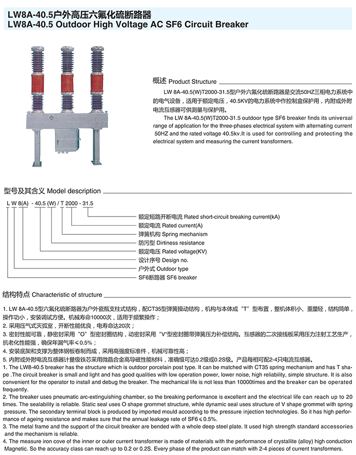 LW8A-40.5戶外高壓六氟化硫斷路器