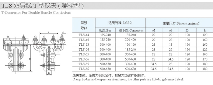 TLS型雙導線雙引下線T型線夾(螺栓型)
