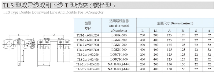 TLS型雙導線雙引下線T型線夾(螺栓型)