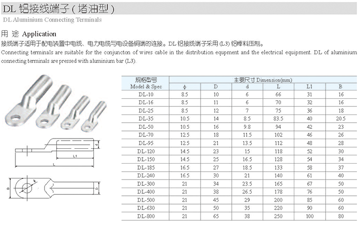 DL鋁接線端子(堵油型)