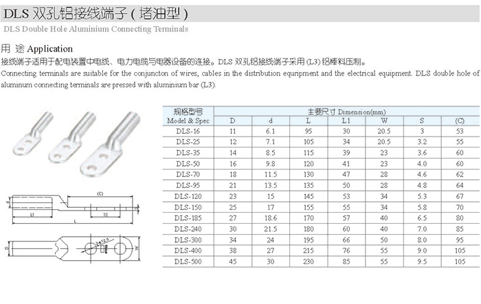 DLS雙孔鋁接線端子(堵油型)