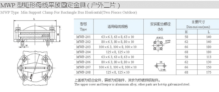MWP型矩形母線平放固定金具(戶外二片)