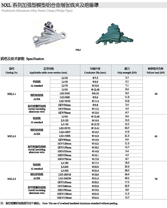 NXL系列加強(qiáng)型楔形鋁合金耐張線夾及絕緣罩