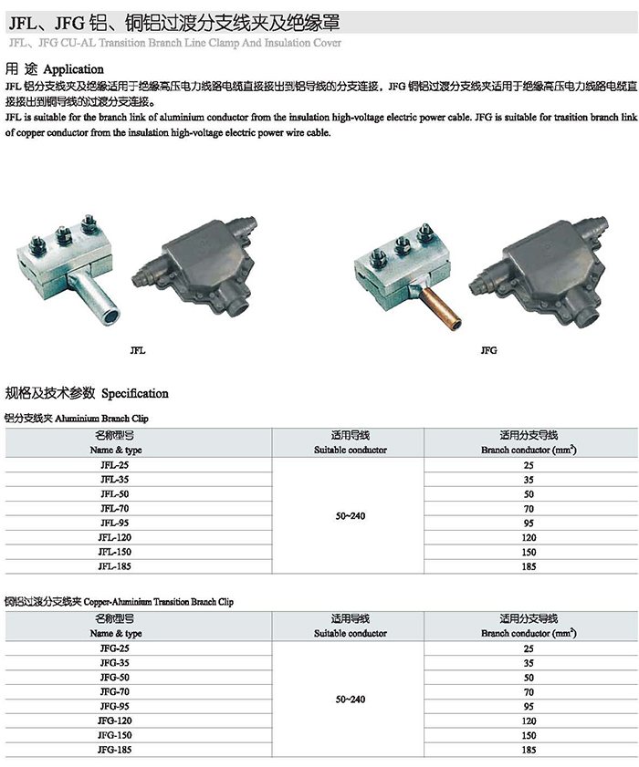 JFL、JFG鋁、銅鋁過(guò)渡分支線夾及絕緣罩