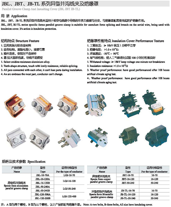 JBL、JBT、JB-TL系列異型并溝線夾及絕緣罩