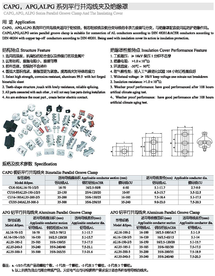 CAPG,APG、ALPG系列平行并溝線夾及絕緣罩