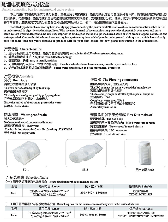 地埋電纜填充式分接盒