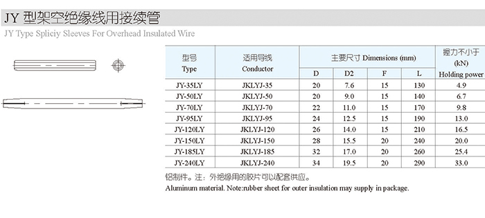 JY型架空絕緣線(xiàn)用接續(xù)管