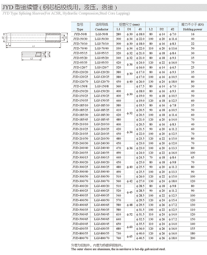 JYD型接續(xù)管(鋼芯鋁絞線用,液壓,搭接)