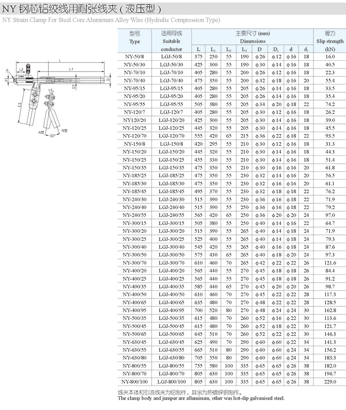 NY鋼芯鋁絞線用耐張線夾(液壓型)