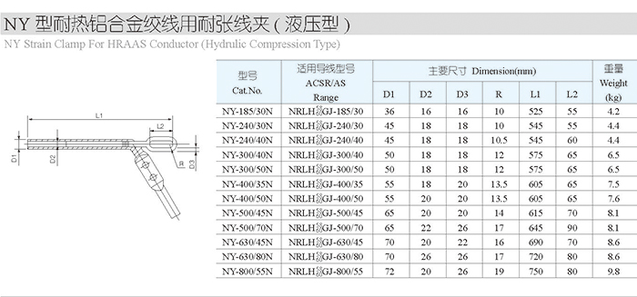 NY型耐熱鋁合金絞線用耐張線夾(液壓型)