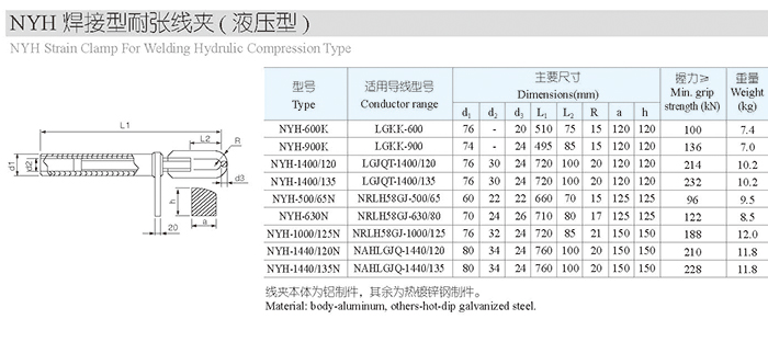 NYH焊接型耐張線夾(配引流線夾)(液壓型)