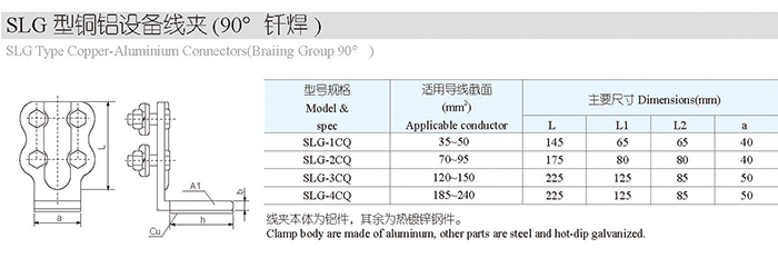 SLG型銅鋁設(shè)備線夾(90°釬焊)