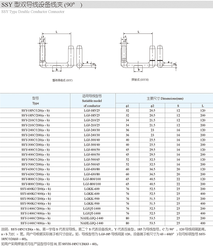 SSY型雙導(dǎo)線設(shè)備線夾(90°)