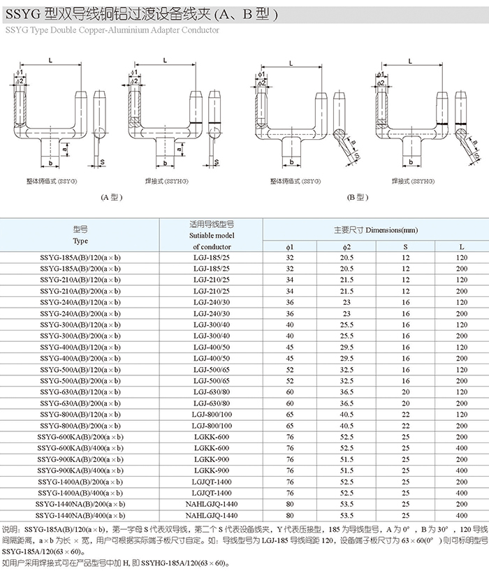SSYG型雙導(dǎo)線銅鋁過渡設(shè)備線夾(A、B型)