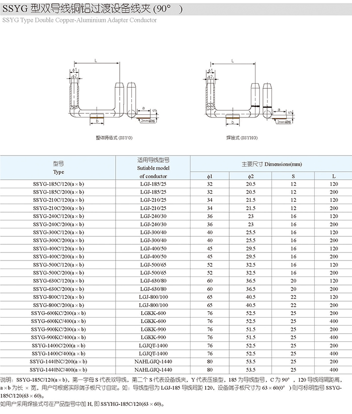 SSYG型雙導(dǎo)線銅鋁過渡設(shè)備線夾(90°)