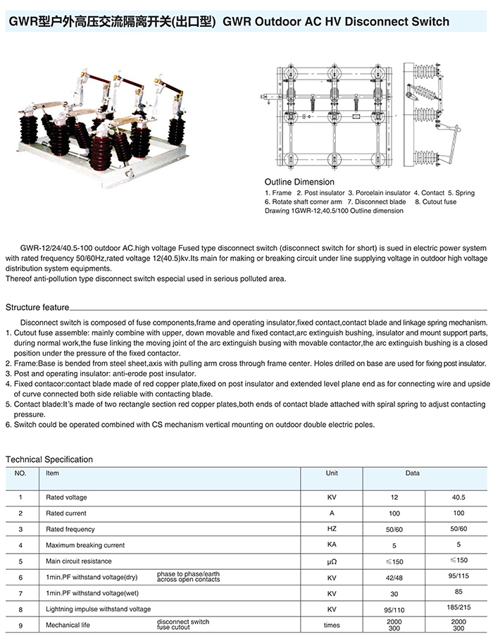 GWR型戶外高壓隔離開(kāi)關(guān)(出口型)