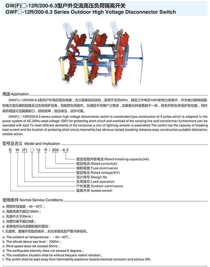 GW(F)□-12R/200-6.3型戶外交流高壓負(fù)荷開(kāi)關(guān)