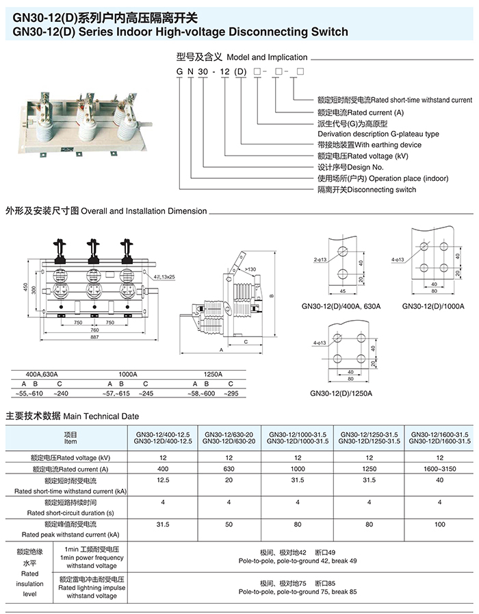 GN30-12(D)系列戶內(nèi)高壓隔離開關(guān)